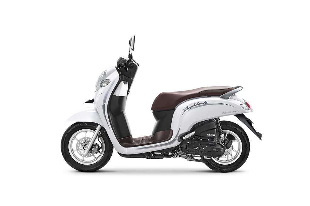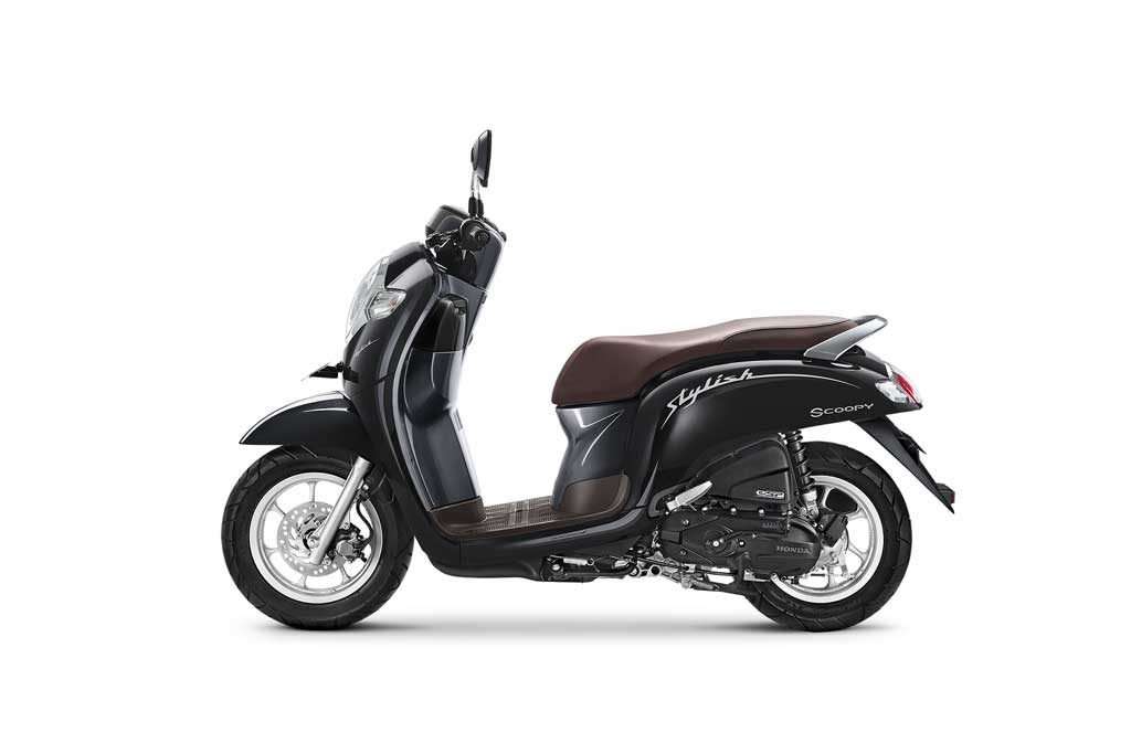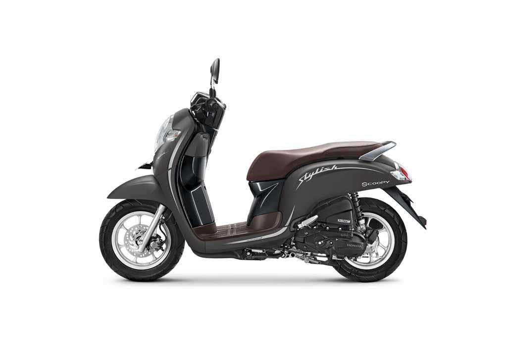 Total, New Honda Scoopy kini dipasarkan dengan 7 varian warna. Pada varian stylish kini hadir dengan tampilan stripe elegan berkelas dengan menonjolkan garis minimalis dilengkapi tulisan stylish di sisi bodi motor sebagai ciri khas dari model ini. Varian stylish ini memilki 4 pilihan warna, dimana warna terbaru yaitu Stylish matte brown. Pilihan warna yang telah ada sebelumnya, yaitu Stylish white, Stylish black, dan Stylish matte red.